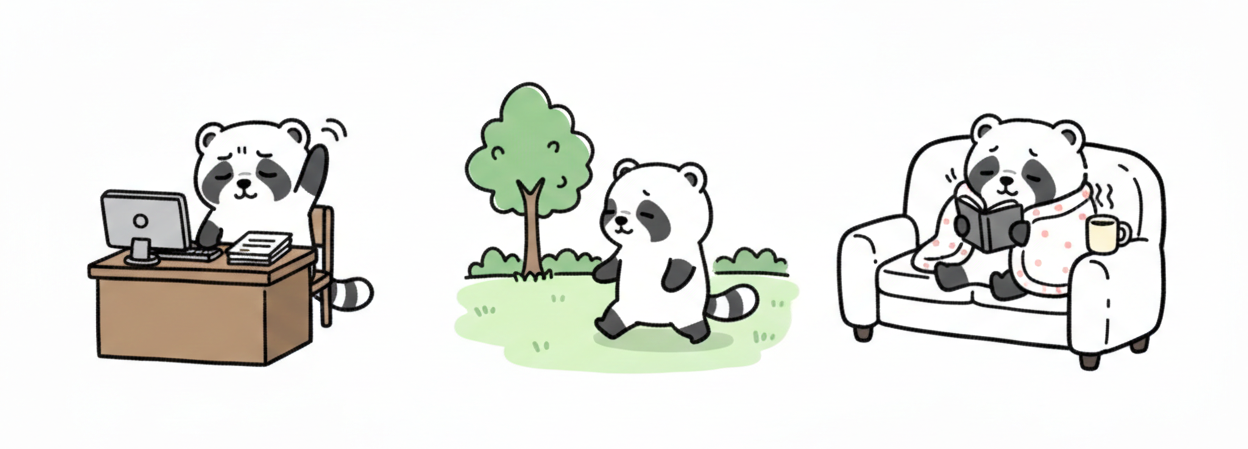- 점진적 휴식: 프로젝트가 끝난 직후 하루 종일 잠만 자는 것보다, 가벼운 산책이나 스트레칭으로 몸의 긴장을 천천히 이완시켜 주세요.
